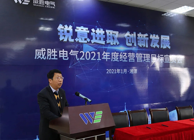 威勝電氣兩位BG總裁分別對各自業務領域2021年的經營規劃與實現目標的決心進行了發言。智慧能源BG總裁曾辛先生提出,2021年新能源發展將再出發,以互聯、互動、共享的智慧能源服務技術,為碳中和目標下的能源低碳化、電氣化發展提供高友好性、高經濟性的智慧能源產品與服務,以實現經營目標和業務價值;智能配網BG總裁馮喜軍先生從市場開拓、運營管理、產業升級三方闡述了2021年經營思路:鎖定六大重點市場,以規模推動效益;提升精益生產能力,以管理優化質量;創新智能配電方案,以升級帶動發展。