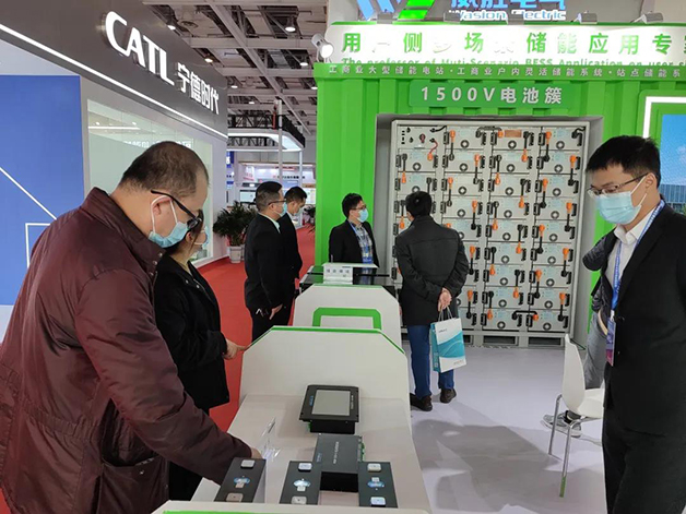 威勝電氣因深厚的技術研發實力和不斷探索求新的創新意識,迅速將1500V技術攻克,并全新研發出了第三代1500V液冷儲能系統,獨創了液相冷卻技術、獨創箱內消防技術,該產品一是能更好的與1500V光伏系統相呼應;二是系統能量密度和能源轉換效率會大幅提高;三是系統集成成本、集裝箱、線損、占地和施工成本會大幅減少!新產品、新技術,創意露面也吸引了一眾專業觀眾前來交流。