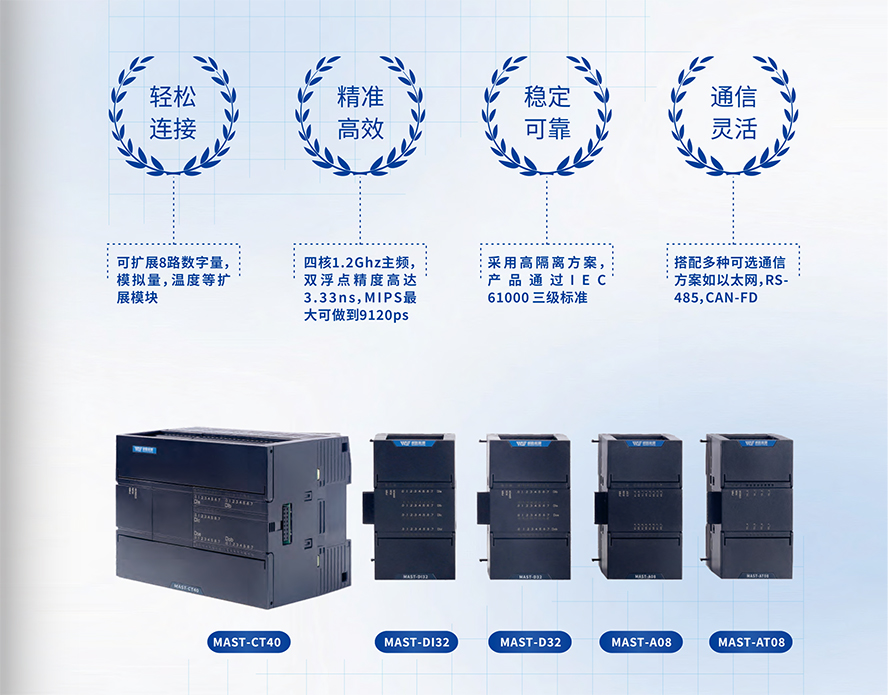 2、可提供至少20路通用數字I/O信號接口,具有一路10/100/1000M自適應以太網接口、RS485等通訊接口,該系列控制器可獨立工作, 也可利用通訊接口與其它控制器、人機界面配合使用,實現功能更復雜、操作更便利的綜合控制。