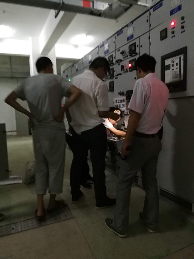 送電服務圓滿結束,本可以打道回府,享受周末的胡振華又接到了永州新商城項目業主單位的電話,業主單位為確保新商城能在國慶節開業,保障電力運行安全,所以想提前試運行,胡振華二話不說立馬奔赴項目現場,抵達時已經是晚上22點了。